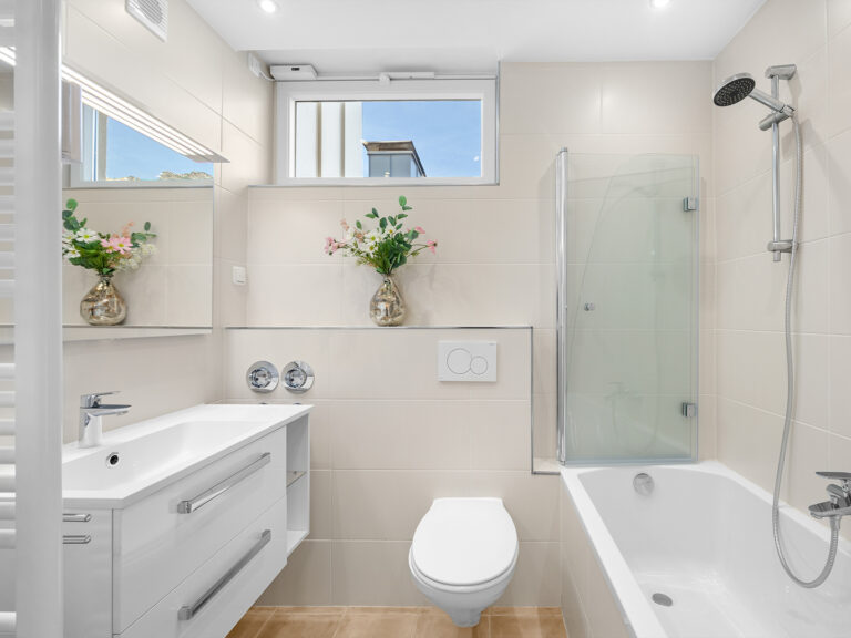 - Pflegeleichter und allergiefreundlicher Fliesenboden in der gesamten Wohnung